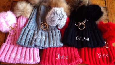 Our new cosy bobble hat & matching keyring...