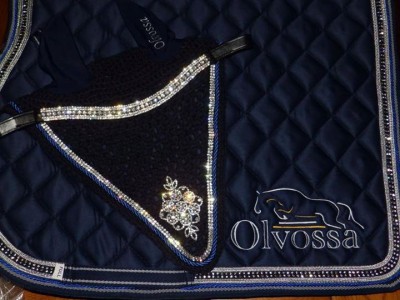 The stunning numnah holds a two row silver crystal trim decoration inset of two row piping with our logo on one side.
