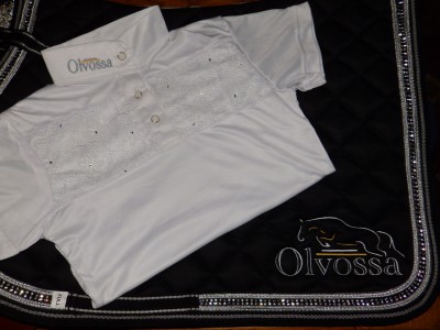 Our new lace panel performance show shirt sprinkled with Swarovski crystals with a matching crystal, double row piping black and silver numnah.