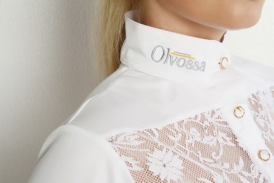 The stylish & elegant white lace panel, soft stretch performance show shirt is one of Olvossa's newest designs...